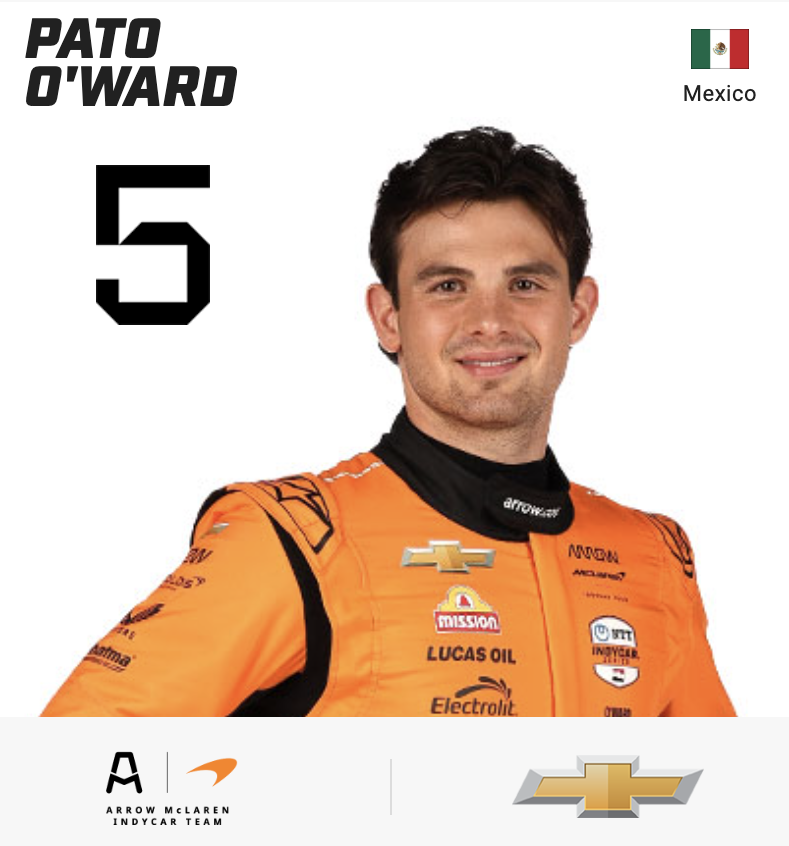 Patricio (Pato) O'Ward is coming for your attention, at least, whether you like it or not. Here is his headshot and IndyCar driver profile.